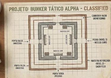 Chega de construir paredes aleatórias. Construa um cofre. Esta consultoria visa resolver o maior pesadelo de qualquer jogador avançado: a segurança do loot. Utilizando princípios de "Defesa em Camadas" (Onion Layering) e "Honeycombing" (Favo de Mel), nós desenharemos a planta baixa exata para tornar sua base financeiramente inviável para qualquer invasor (Raider). O que está sendo preparado: Plantas baixas em PDF (3x3, 4x4, 5x5), esquemas de posicionamento de baús e estratégias de isca para enganar a Inteligência Artificial.